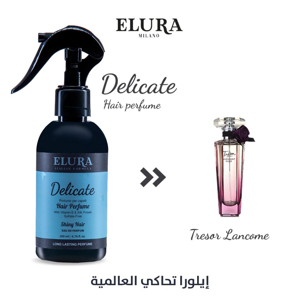 – عطر الشعر ايلورا ديليكِت (Lancôme Trésor) – مزيج رقيق من العنبر والمسك.