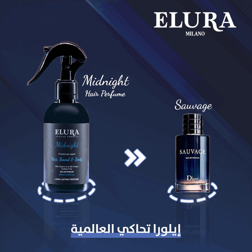 – عطر الشعر ايلورا ميدنايت (Sauvage) – عطر رجولي قوي وعصري.