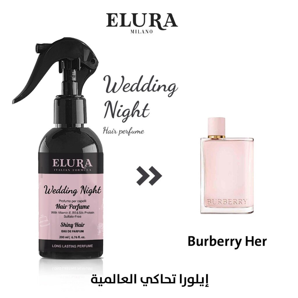– عطر الشعر ايلورا ويدينغ نايت (Burberry Her) – مثالي للمناسبات الخاصة.